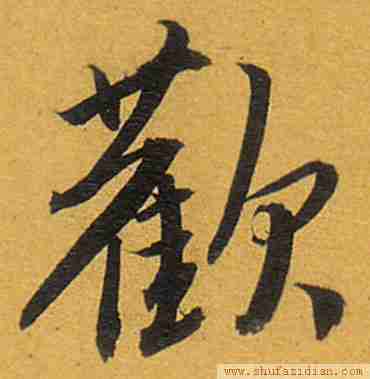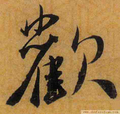 歡: 喜樂也。从欠雚聲。 懽: 喜