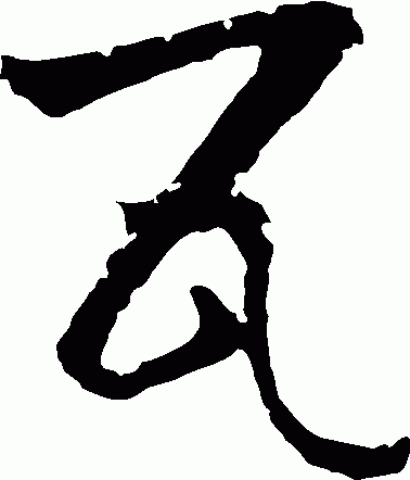 瓦: 土器已燒之總名。象形。凡瓦之屬皆从瓦。
