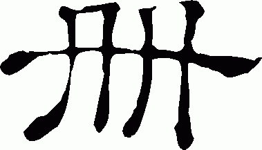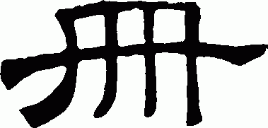 冊: 符命也。諸矦進受於王也。象其札一長一短,中有二編之形。凡冊之屬皆从冊。
