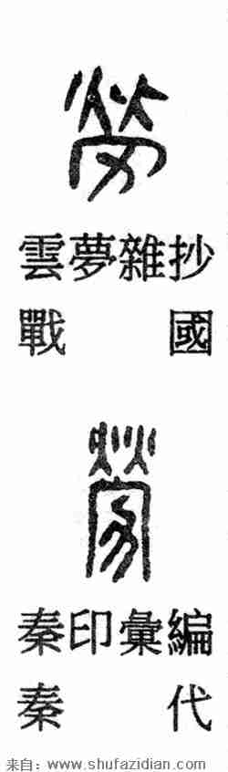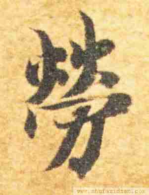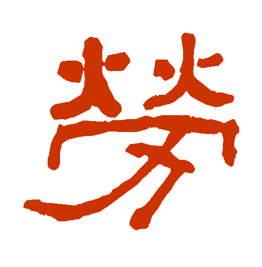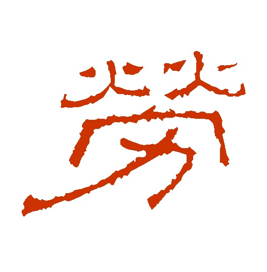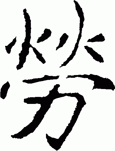勞: 劇也。从力,熒省。熒,火燒冂,用力者勞。