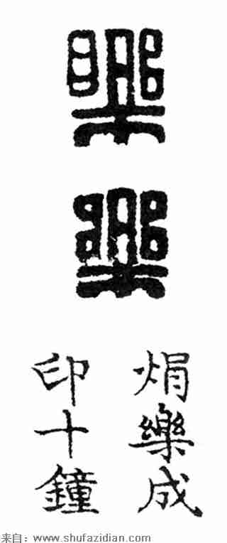 樂: 五聲八音緫名。象鼓鞞。木,虡也。