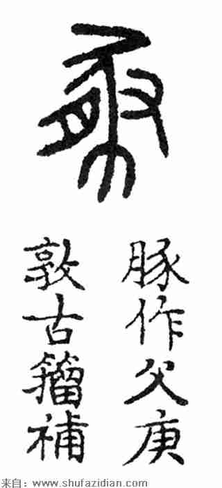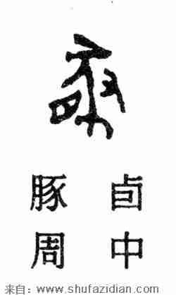 豚: 小豕也。从彖省,象形。从又持肉,以給祠祀。凡豚之屬皆从豚。