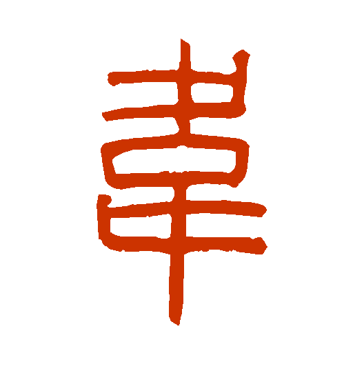 韋: 相背也。从舛囗聲。獸皮之韋,可以束枉戾相韋背,故借以爲皮韋。凡韋之屬皆从韋。