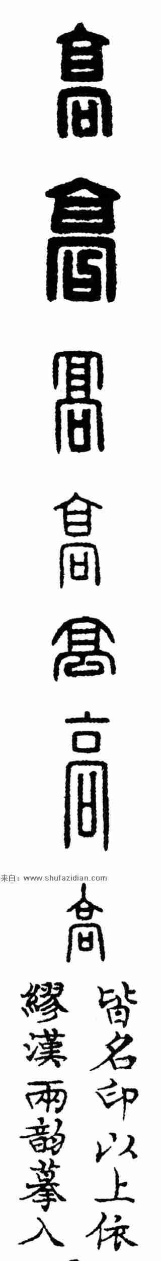 高: 崇也。象臺觀高之形。从冂、口。與倉、舍同意。凡高之屬皆从高。