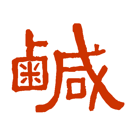 咸: 皆也。悉也。从口从戌。戌,悉也。 鹹: 銜也。北方味也。从鹵咸聲。