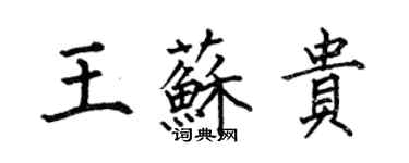 王苏贵繁体字写法:王蘇貴。起名王苏贵的常见性别:男。