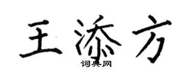 王添方繁体字写法:王添方。起名王添方的常见性别:女。