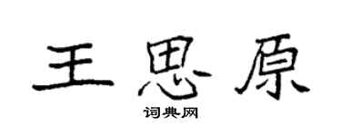 王思原繁体字写法:王思原。起名王思原的常见性别:女。