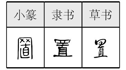 【提示】在异体字整理前,表“设立”“建立” 义时,“寘”是“置” 的异体; 表示 “购买、备办” “安放” 义时,“寘” 不是 “置” 的异体。罒,第四笔宋体是竖,楷体是撇。直,中间是三横,不要错写成两横; 旧字形中间是目,目下是竖折。直中间的三横,宋体与左右两边相接,楷体与左边相接,与右边相离。 *置1〔寘〕zhì13画 罒部 搁;安放;放下: 安~|放~|搁~|~之度外|~之不理|~若罔闻。