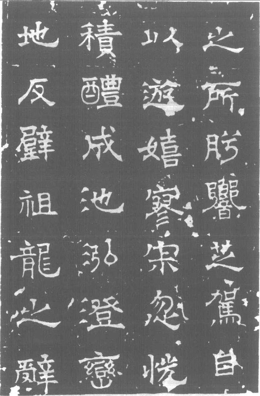 華岳頌碑 (局部) 又名<西岳華山神廟碑>。萬紐于瑾奉敕撰,趙文淵書。碑高一丈一尺九寸,廣四尺六寸。隸書二十行,行五十五字。額篆書題“西岳華山神廟之碑”八字,刻成二行。碑陰為唐<華岳精享昭應碑>,右側為顏真卿 <謁岳記>,左側刻有賈竦及諸人題咏。碑陽行間空白處有宋、元人題名,大小參差,布滿碑面。初立于陕西華陰華岳廟,今移西安碑林。書含篆、籀意,頗呈異趣,但自古評說不一。《石墨鎸華》曰: “正與李仲璇 <孔廟碑> ( <李仲璇修孔子廟碑>) 同,亦褚河南<聖教> ( <同州聖教序>)、 歐陽蘭㫬 (道因) ( <道因法師碑>)之師由出也。”《清儀閣金石題跋》曰:“此刻楷、隸參雜,山陰 (王羲之)遺意則渺茫難尋,而雜置魏、齊諸石刻中,獨見矯健。”其他稱妙者猶多,但《金石史》則非議之:“碑字盡緬古法,淺陋鄙野,一見欲嘔。而名動一時,何故也?”清楊守敬《平碑記》持折衷之見:“文淵在周甚有書名。是碑,前人嗤為惡札,為分書罪人。余謂以分書論之,誠不佳;若以其意作真書,殊峭拔。分、楷分屬一氣,而亦有不同處也。”要之,好惡因人而異,持論自有不同,可以并存。但作為斯時之一派,是碑自有重要價值,足為研究書體變遷之資。 |
