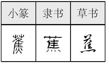 15画 艹部 (1) 蕉麻,又称麻蕉、马尼拉麻。多年生草本植物,形似芭蕉。叶鞘(qiào)纤维可制绳、织布或造纸。(2) 芭蕉科植物的泛称: 芭~|香~。又指某些像芭蕉的大叶子植物: 美人~。
