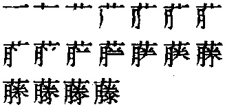 18画 艹部 (1) 蔓生植物名,有紫藤、白藤等多种。(2) 泛指植物的匍匐(púfú)茎或攀缘茎: 瓜~|葡萄~。