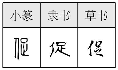 cù形声,从人,足声,本义为紧迫,时间短,引申为催、靠近等。 促 金文; 篆cù[亻(人,意符) + 足(聲符) →促(《説文》:“促,迫也。從人,足聲。”促,時間緊迫〈急促、短促、倉促〉;坐近〈促膝、促席〉。催,推動:促使。促進。)] [漢] 無名氏《古詩十九首·東城高且長》:“音響一何悲,弦急知柱促。” [宋] 葉夢得《水調歌頭》:“霜降碧天靜,秋事促西風。” 促cù(9画)