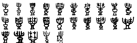 上海博物館藏戰國楚竹書二·容成氏48,戰國 文王於是 (乎)素耑(端) (褰)裳以行九邦,七邦逨(來)備(服),豐、喬(鎬)不備(服)。 按: 从壴,从三丰。