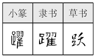 11画 足部 跳: ~进|跳~|~过栏杆。