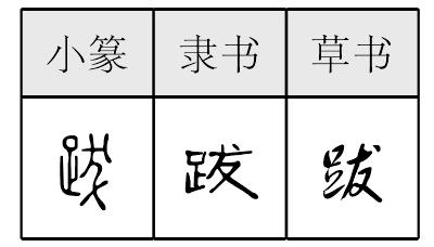 bá形声,从足,犮(bá)声,本义为仆倒,跌倒,假借为踏草而行、翻山越岭、一种文体等。 跋 金文; 篆bá[足(意符)+犮(聲意符)→犮(《説文》:“跋,蹎(diān,跌倒)跋也。從足,犮聲。”跋,翻山越嶺〈跋涉〉。)] 《左傳·成公十三年》:“文公躬擐甲胄,跋履山川。”(文公親自穿甲戴盔,跋山涉水。) 巴金《探索集·灌輸和宣傳》:“我的唯一辦法就是在自己的作品書前寫序、寫小引、寫前記,書後寫後記、寫附記、寫跋。” *跋bá12画 足部 (1) 〈书〉在山地行走: ~山涉水。 (2) 文体的一种,一般放在著述的后面,或进行评介,或说明写作经过: 题~|序~。 (3) 【跋扈】(—hù)专横暴戾(lì): 飞扬~|专横~。 |