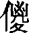 13画 人部 (1) 愚蠢;糊涂: ~子|~瓜|~话|装~|~头~脑。(2) 太死板;不懂得变通: ~等|~干。(3) 发呆;发愣: ~眼|吓~了。