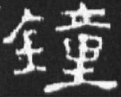 李挺墓誌,東魏 威敵字氓,允鐘朝望。 《説文》: “鐘, 樂鐘也。 秋分之音, 物穜成。 从金童聲。 古者垂作鐘。 , 鐘或从甬。” 早期金文中聲符“童”或爲从从目重聲, 或爲从从目東聲, 後省爲从立从目𡈼聲, 隸變後“目”、“𡈼”粘連爲“里”, “”則訛變爲“立”。 “鐘”爲一種樂器,與 “鍾”本非一字。後世 “鐘”、“鍾”通用。