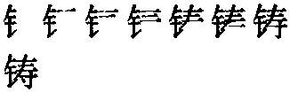 【析形】甲骨文字形为会意字,下像熔炉的基座,上从双手持盖,中像被熔铸的金属,会以手持盖熔铸金属之意。金文字形增意符金(表示金属熔铸)和声符(畴的初文)。小篆字形改作形声字,从金,寿声。 【释义】《说文》:“销金也。”本义铸造,指熔炼金属或以液态非金属材料浇制成器的统称。铸是铸造金属器皿,以此类比,引申为造就(人才)、锤炼(文辞)。[陶铸]原指制作陶范并用以铸造金属器物,比喻造就、培育。 【shape analysis】It is the associative character. The lower part is like the base of a furnace and the upper part is like catching the cover with both hands, while in the middle, it looks like the melting metal. In Bronze Inscriptions it was added a meaningful part [ The initial text of 畴(chóu, 畴)] . In Small Seal script, it turned to be the pictophonetic characters The meaningful part is金(jīn, gold)and the phonetic component is寿(shòu, longevity). 【original meaning】 Casting, for example, casting the metal or the device.