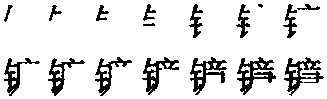 (18画)【提示】钅,5画,第二笔是横,不是侧点; 第五笔是一竖提,不是一竖、一提两笔。 廉中的, 当中有竖笔穿过,中间一横与横折相交、出头,不要错写成相接、不出头的彐。