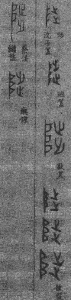 甲骨文一款所标示的既是一个字,也可算作一个符号。说它是个字,它后来演变为 “阜”; 说它是个符号,它后来演变为“阝”(左)。阝,我们习惯于称它为左耳,它参与组构了许多汉字,它的原始取象是远古时代穴居人们上下层磴的脚窝。从阜(阝)所组构的汉字都具有隔挡、阻断、山丘、壁障和升降的意蕴。 甲骨文的“陟”(音只),从阜从步,为会意字。“阜”即上下洞穴的脚窝,“步”是人左右两只向上的脚(止),标示人沿着穴壁的脚窝向上出穴,各自 “止” 的向上伸出的弯勾是左右双脚拇指的象形标意。陟,殷卜用作上升、升祭,用作人名,尹陟是伊尹子,也用作登高,“王陟山”,是说商王登山。 金文一款的 “陟”,穴壁脚窝的标意更具形象韵味,而甲骨文人脚的象形韵味消失,向文字化 “止” 迈了一步,这是文字在长期的流变过程中的一种正常的必然现象。二款的“陟”更加约简。小篆的 “陟”,从阜从步,楷书隶作 “陟”。