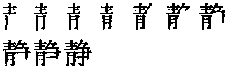 14画 青部 (1) 停止不动: ~止|~态|~物|风平浪~|树欲~而风不止。(2) 没有声响: ~默|寂~|肃~|夜深人~。(3) 安详: 文~|沉~|平心~气。
