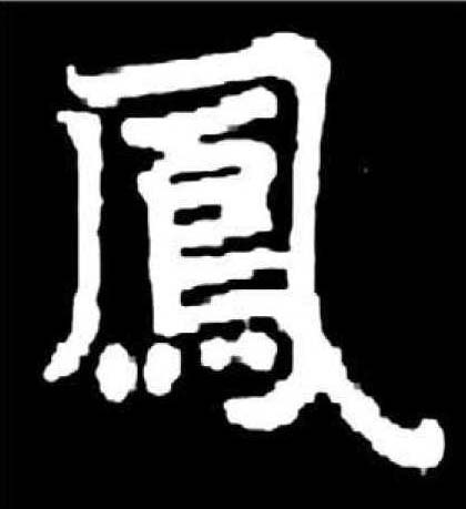 李和墓誌,唐 焕兮若五色之鸞鳳。 《説文》: “鳳,神鳥也。天老曰: 鳳之象也,鴻前麐後,蛇頸魚尾,鸛顙鴛思,龍文虎背,燕頷雞喙,五色備舉。出於東方君子之國,翺翔四海之外,過崐崘, 飲砥柱, 濯羽弱水, 莫宿風穴。 見則天下大安寕。 从鳥凡聲。 , 古文鳳, 象形。 鳳飛, 羣鳥從以萬數, 故以爲朋黨字。 , 亦古文鳳。 ” 甲骨文象鳥之形, 鳥首之上“ ”、 “ ”等形, 與“龍”所从無異, 或以爲同象冠冕,古人尊視龍鳳,故加冠形以别於他獸。“鳳”字之羽翼,亦多被誇張美飾,亦用以凸顯鳳鳥之美。整字或从“凡”,則加聲符耳,乃後世通行字之濫觴。甲骨文“鳳”多假爲“風”。