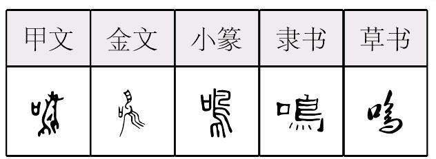 8画 口部 (1) 鸟兽昆虫叫: 鸟~|鸡~|~蝉|~禽。(2) 发出声音: 耳~|轰~|礼炮齐~。(3) 使发出声音: ~鼓|~枪|~锣开道。(4) 发表意见;表达感情: ~谢|~冤|不平则~|百家争~。
