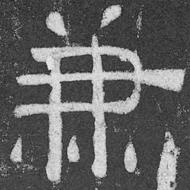 源君妻崔氏墓誌,唐 唐故太府丞兼通事舎人左遷潤州司士叅軍源府君夫人清河崔氏墓誌銘并序。 《説文》: “兼,并也。从又持秝。兼持二禾,秉持一禾。” 春秋金文所見从又持二禾,監省聲。秦簡所見以从又持二禾會意,爲《説文》篆文所本。