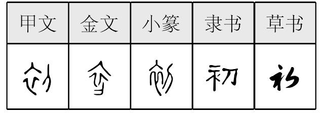 chū表意,从刀从衣,以刀裁割兽皮或布帛是制衣(皮衣或布衣)的第一道工序,本义表示开始,引申为刚开始的、第一个、等级最低的、原来的等。 初 (chū)始也。从刀、衣。裁衣之始也。 初chū(7画)