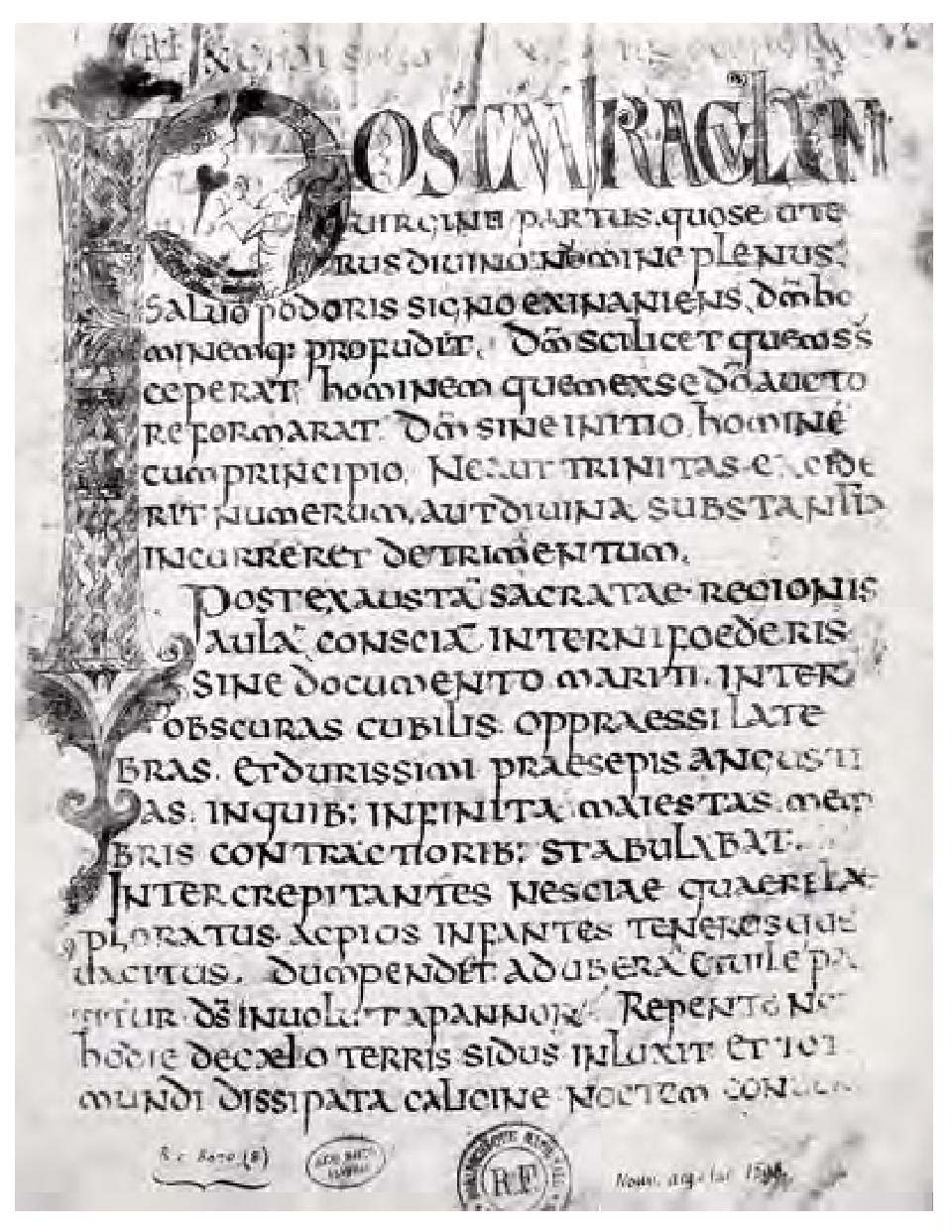 当时的建筑过渡到圆拱形风格,在文字中也将圆弧形作为形态变化的基本准则。 在半安色尔体中,各字母笔画的上伸和下伸部分都十分明显。这时候它已经表现出一种小写字母的特征,因此半安色尔体也被看作是第一种书法小写文字。 我们今天使用的拉丁字体里的小写字母已经在这种字体中塑造了自己的原始形态。其中最主要的包括:形状颇有特色的字母g,闭合字母a和e,以及笔画较宽的字母b,d,u,r。正是这些新的字母形状的出现,半安色尔体成为进入小写字母最后一个阶段的入门字体。在半安色尔体中没有大写字母,所出现的大写字母均为安色尔体。 半安色尔体是在整个大罗马帝国范围内得到传播并统一的最后一种字体。随着基督教的传播和交流联络的扩伸,这种字体也被传播到西方各个被征服的地区,并被不同的民族赋予了一定的宗教色彩。为了呼应这种彰显宗教的特质,在公元6世纪到公元8世纪之间,还出现了一种笔法上完全不同的宗教字体(更合适的说法为前加洛林小写体)。 |