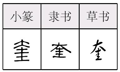 kuí形声,从大,圭(ɡuī)声,本义为胯,两大腿之间,引申为星名(因形似胯而得名)。 奎 金文; 篆kuí[大(成人形,意符)+ 圭(聲符)→奎(《説文》:“奎,兩髀之閑。從大,圭聲。”奎,星名,二十八宿之一;奎寧:藥名,白色結晶或無定形粉末,亦稱金雞納霜。是治療瘧疾的藥物。今又有青蒿素誕生。發明者屠呦呦因此獲諾貝爾獎。)] [宋] 王安石 《送鄆州知府宋諫議》:“地靈奎宿照,野沃汶河漸。”(注:奎宿,二十八宿之一,爲西方白虎七宿的第一宿,有星十六顆。因其形似胯而得名;汶河,是山東境内唯一没有污染且不斷流的河流,水質清澈,兩岸風景美麗。) △奎kuí9画 大部 星宿(xiù)名,二十八宿之一。 |