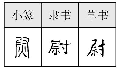 表意,小篆从 .jpg) (yí,平)、又、火,又指手的动作,表示熨烫衣帛使平整,隶定为“尉”。本义读wèi,熨平(是“熨”的本字),引申为安慰(后作“慰”),假借为官名,由此引申为军官的级别或军衔名;又读yù,用于“尉迟”,复姓。尉犁,地名,在新疆。 【辨析】 以“尉”作音符构成的形声字读音不同。wèi:蔚、慰∣yùn:熨。 尉wèi,yù (篆) 小篆由尸(人)、二、又(手)、火构成,属会意字。段玉裁说:尸、二,即“仁”字。意思是亲手用火去温暖别人。本义为慰问。隶书将“火”写成“灬”(《白石神君碑》),也有写成三点的(《韩敕碑》)。楷书将三点变成了“小”,便完全没有了“火”的痕迹。也有学者认为是“熨”之本字。“尸”似是熨斗的象形。《说文》:“尉,持火以尉申缯也。”缯,丝织品。作声符生成的字有: wèi 慰(慰问) 蔚(蔚蓝) 熨(中医用药热敷。“疾在腠理,汤熨之所及也。”——《韩非子·喻老》) yùn 熨(熨斗)