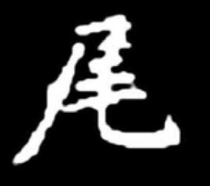 元昭墓誌,北魏 首尾三周,效跨齊魯。 《説文》: “尾,微也。从到毛在尸後。古人或飾系尾,西南夷亦然。凡尾之屬皆从尾。” 甲骨文、戰國文字“尾”字象人後有尾形,篆書承襲之。許慎以“微也”爲訓是聲訓,只揭示其得名由來,未能準確揭示其詞義。隸書尾形漸訛作“毛”,楷書遂以从尸从毛結體。本義表示尾巴。引申表示最末的。