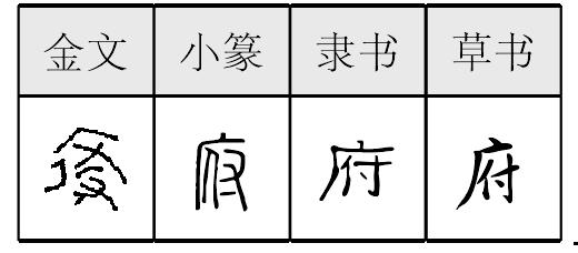 fǔ形声,从广(yǎn),付声,本义为储藏文书或财物之处,引申为汇萃和聚集之处、旧时官吏办公的地方、旧时达官贵人的住宅、某些国家元首办公和居住的地方、国家政权机关等。 【辨析】 ❶以“府”作音符构成的形声字一般读fǔ:腐、俯、腑。 ❷府/库 在古代,“府”指收藏文书和财物的地方,与“库”义近。“库”指收藏兵器、财物等的地方。 府fǔ(8画)