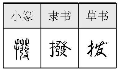 8画 手部 (1) 手脚或棍棒等横向用力,使东西分开或跟着移动: ~开额前的头发|~浪鼓|~门|把钟~一下|把篝火~旺。(2) 分发;调配: ~款|调~|~几个人过来帮帮忙。(3) 弹奏(弦乐器): 弹~|~弦。(4) 治理: ~乱反正。(5) 量词。用于成批的人或物: 咱们分两~儿走|这批粮食得分成三~儿运。