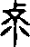 (c)重複形體 重複形體大都屬表意字。但偶有情況特殊,使用此法以指稱物象,如: 星(字110)【 ,精光也。 从三日。 凡晶之屬皆从晶】 【 ,萬物之精上為列星。从晶从生聲。一曰象形。从○。古○復注中,故與日同。 ,古文。 ,或省】,星體數量多,作三顆星形狀,避免與日或它物混淆。引申為晶亮,後來加聲符生以為分別。絲(字111) 【 , 蠶所吐也。 从二糸。 凡絲之屬皆从絲】, 絲線細,捻成線股後才能上機紡織,故以兩股造字。作為一字的構件時才用單股絲線。呂(字112) 【 , 脊骨也。 象形。 昔大嶽為禹心呂之臣, 故封呂侯。 凡呂之屬皆从呂。 ,篆文呂从肉旅聲】,象兩塊金屬錠形, 為避免與丁混淆而重複形體。後加金以明其物質的類別。宮字也因易與呂字混淆而加宀( )。
