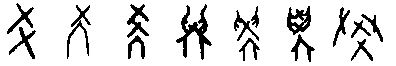 興(字149)【 ,興也。 从舁同, 同, 同力也】, 四手共舉起一輿架。輿架不成字。疾(字150)【 ,病也。 从疒,矢聲。 ,籀文疾。 ,古文】,人為箭所傷之病痛。疒(字151)【 ,倚也,人有疾痛也。 象倚箸之形。 凡疒之屬皆从疒。】,人病危臥於床上,預備接受合於禮儀的死亡儀式。衆(字152)【 ,多也。 从众目示意】, 以日下三人表達衆多的勞工大衆。步(字153)【 ,行也。 从止相背。 凡步之屬皆从步】, 以兩腳步行走的一前一後位置表達其走路動態。炙【 ,炙肉也。 从肉在火上。 凡炙之屬皆从炙】,表現肉在火上燒烤之狀。E. 兩個或更多的重複形體 林(字154)【 ,平土有叢木曰林。 从二木。 凡林之屬皆从林】,指生長林木衆多的地區,以並立的樹木表意。从(字155)【 ,相聽也。 从二人。 凡从之屬皆从从】, 一人在一人身後相隨之情況。比(字156)【 ,密也。二人為从,反从為比。 ,古文比】, 甲骨文从比不分。以一人隨從於一人之後表示其親密關係,或以兩把匙匕陳放在一起表達緊密關係。