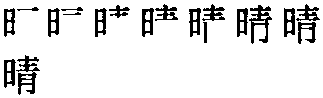 (12画)【提示】日中间的横,宋体与左右两边相接,楷体与左边相接,与右边相离。月,单独位于字或部件下面时,起笔的竖撇改竖;中间的两横,宋体与左右两边相接,楷体与左边相接,与右边相离。