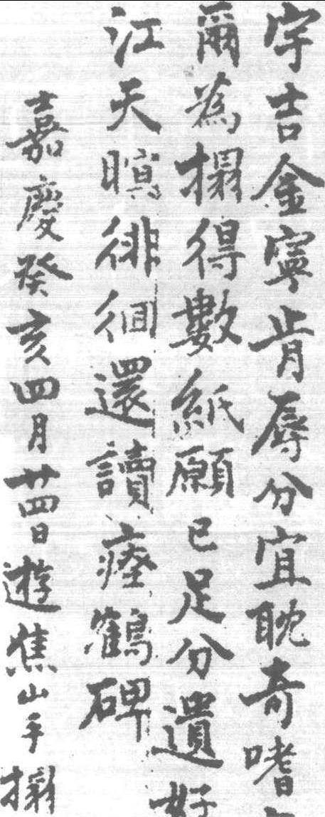 李遇孫書 (局部) (清) 嘉興人。字慶伯,號金潤,又號芝省齋,别署上元甲子百歲翁。富孫徒弟。阮元視學浙江,以諸生受知特深。阮氏巡撫浙地時,招致詁經精舍。嘉慶(1796—1820)間拔優貢,官處州訓導。淹貫經術,尤耽金石,擅考證,富收藏。撰有《尚書隸古定釋文》、《金石學録》四卷、《括蒼金石志》 十六卷、《金石余論》一卷、《北宋石經補考》、《鶴徵録》、《日知録續補正》、《芝省齋集》。→見【戴光曾】 |