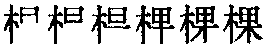 (12画)【提示】木,中间是竖,不是竖钩; 位于字左时,末笔捺改点。果,中间是竖,不是竖钩; 上面中间一横宋体与左右两边相接,楷体与左右两边相离。