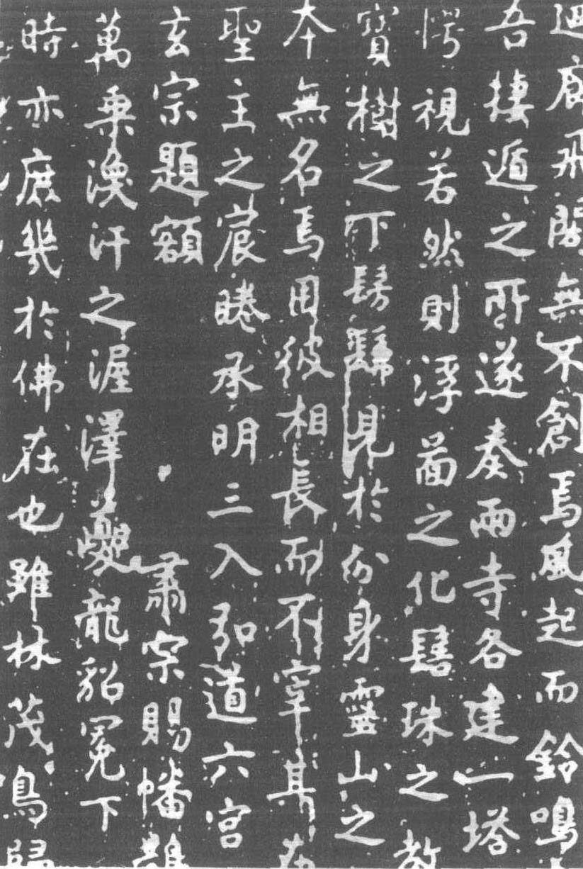 | 释义 | 楚金禪師碑唐·貞元二十一年(805)刻。僧飛錫撰,吴通微書。碑高七尺四寸二分,廣四尺一寸八分。正書三十二行,行五十五字。刻于颜真卿〈多寳塔感應碑〉之陰,為前者建立五十三年後鎸刻。吴通微書法源出〈懷仁集王聖教序〉,但過為圓熟,所謂清圓有余,遒勁不足,開宋人“院體”先路,致後人目為俗書,然在當時亦自有名。楚金者,多寳塔建立之人也。石在西安碑林,完好不缺一字。