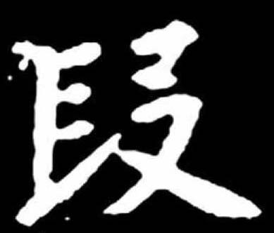 duàn表意,金文象手持工具在山崖下敲击石块等物之形,小篆字形有讹变,隶定为“段”。本义表示捶击、敲打,是“鍛(锻)”的本字,假借为量词,用于长条形的东西分成的若干部分、时间或路程的一定距离、事物的一部分等。 段duàn甲骨文字形与“叚”相似,为会意字,左边是“石”的变形,右边是拿着锤子的手。本义为手拿锤子砸石头。与“断”同音。作声符生成的字有: duàn 锻(锻炼) 煅(煅烧) 缎(绸缎) 塅(大片的平地,多用于地名) 椴(一种落叶乔木) 段 (duàn)此“鍛鍊”之古字。从殳,耑省聲。𩏇、緞、毈从之。 段 金文; 篆duàn[礦山的一節。《説文》:“段,椎物也。從殳,端省聲。”段,事物、時間的一節〈階段、地段、片段、段落〉;工礦企業中的行政單位〈工段、機務段〉;圍棋棋手等級的名稱〈段位〉。)] [清] 曹雪芹《紅樓夢》(第五回):“如爾則天分中生成一段癡情,吾輩推之爲‘意淫’。” *段twan[甲骨] [金文] [小篆] 《說文》: ,椎物也。 从殳,耑省聲。(三篇下) 手持工具在山岩挖玉石或金屬礦之狀,有石及鍛打兩義。 *段duàn9画 殳部 (1) 事物划分成的部分: ~落|地~|阶~|片~。 (2) 工矿企业中的一级行政单位: 工~|机务~。 (3) 段位,围棋棋手等级的名称: 九~棋手。 (4) 量词。指事物、时间的一节或一部分: 两~木头|一~铁路|这~时间|一~文章。 |