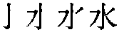 shuǐ象形,甲骨文、金文、小篆象流动的水形,隶定为“水”。本义为河流,引申为江河湖海的总称、水(一种无色无味的液体)、水面、洪水、与水有关的(事物)、稀的汁液等。 【辨析】 以“水”作意符构成的字多与水有关,大致可分为五类:a.指水的性状,如“清、浊、混、浑、深、浅”;b.指水的运动,如“流、涌、沸、滚”;c.指与水有关的事物,如“波、浪、涛、泽”;d.指与水有关的动作,如“游、泳、涉、浴、洗、浇、涮”;e.指水的名称,如“江、河、湖、海、淮、湘、荥”。 水 (shuǐ)此字當横看,如畫水者然,長短皆水紋也。“益”字所从,當是本形。 【按】益,小篆作 ,上象水横置之形,可證王説。 水shuǐ(4画)