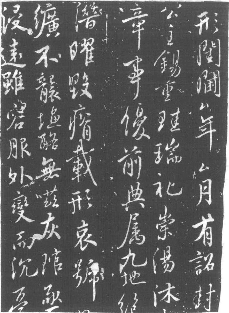 汝南公主墓志銘稿 (局部) 傅唐虞世南撰并書。汝南公主為唐太宗李世民之女,早逝,此係其墓志銘草稿。行書十八行,首尾不全,無撰、書者名。末云“貞觀十年(636)十一月丁亥朔十六日”,此自是公主卒日。書法圓活,結體齊整,故生意索然,酷似取法虞書之米芾筆,遂有米臨之說。此書刻石始于宋代,收入《淳熙秘閣續帖》,明代刻有《戲鴻堂帖》本、《墨池堂帖》本、《鬱罔齋帖》本、《玉烟堂帖》本,清代刻有《經訓堂帖》本、《滋蕙堂帖》本、《穰梨館帖》本、《鄰蘇帖》本。此種刻本,有從真迹摹刻者,亦有據别本摹刻者。 |