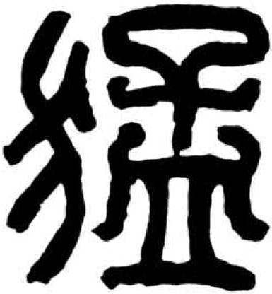 měnɡ形声,从犬,孟声,本义为健壮的犬,引申为凶猛、勇敢有力、声势或强度大而急速、副词(拼命地、尽情地)等。 猛měng(11画)