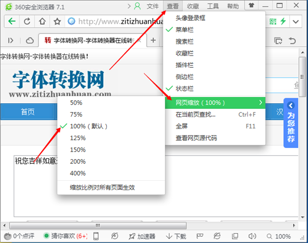 3、现在很多人用360浏览器,下面的教程是恢复360浏览器文字变大的方法。